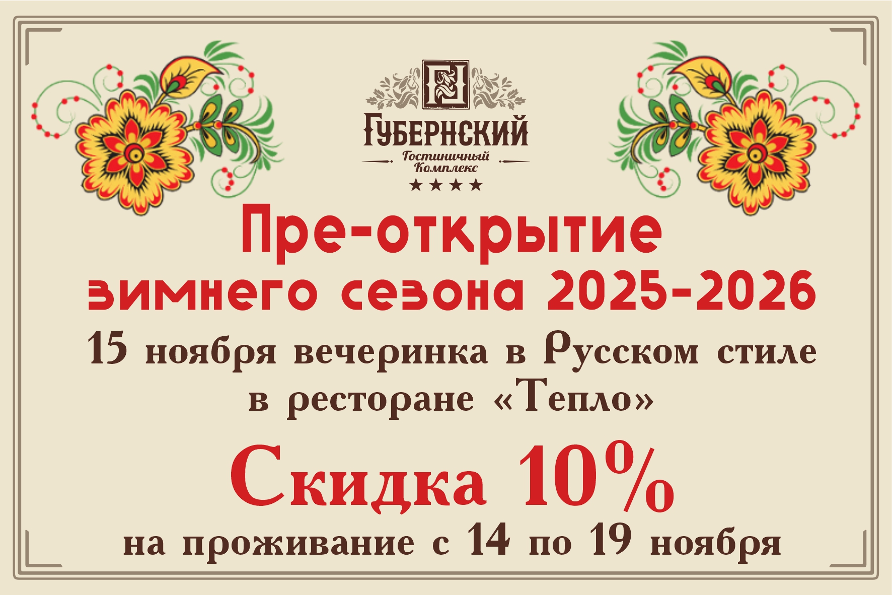 Обращаем ваше внимание, скидка по акциям распространяется только при прямом бронировании по телефону 8-961-710-0111.